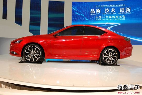 早在2011年上海車展,一汽就展示了名為T012的概念車,而眼前這款量產測試車正是T012的量產版本,車體結構風格,包括格柵,燈組的設計線條都很好的得到了延續,量產版的整體設計上還顯得更加勻稱和諧一些。