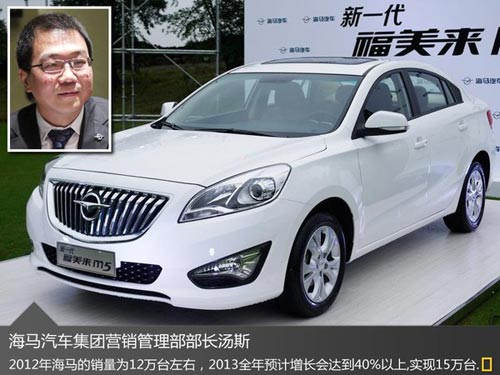 2013年初海馬曾定下年銷量15萬臺的目標(biāo),在先后推出了SUV產(chǎn)品S7、A0級轎車M3之后海馬汽車距離這一目標(biāo)也更進(jìn)一步。近日海馬汽車集團(tuán)營銷管理部部長湯斯先生在接受記者采訪時表示:“2012年海馬的銷量為12萬臺左右,2013全年預(yù)計增長會達(dá)到40%以上,實(shí)現(xiàn)15萬臺的銷量”。在2013年新產(chǎn)品的刺激下海馬汽車完成了銷量的增長,而對于2014年的市場預(yù)估湯斯部長表示依然會保住40%的增長率甚至更高,“希望2014年可以達(dá)到20萬臺”。在產(chǎn)品層面,2014年將會有3款新車型陸續(xù)上市。