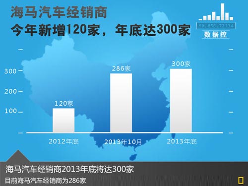 截止到目前,海馬汽車經(jīng)銷商共有286家,已完成較為完善的網(wǎng)絡(luò)布局。海馬經(jīng)銷商已遍布全國31個省市,并全面覆蓋三、四線城市。在今年年初海馬計劃將終端網(wǎng)絡(luò)拓展至300家,按照目前海馬汽車286家的經(jīng)銷商數(shù)量,已完成該拓展計劃的95%以上。