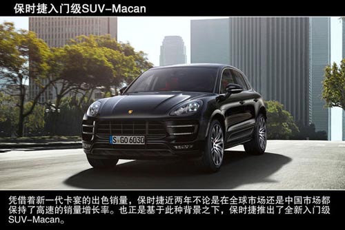 全新保時捷Macan將擁有比奧迪Q5更為寬泛的扭矩分配裝置,同時搭載手動和PDK雙離合器變速箱,運動型的懸掛系統也可通過駕駛員進行阻尼和高度的調節。Macan將成為未來保時捷品牌下的主打車型,預計將占據保時捷品牌50%以上的銷量,類似同門大哥“卡宴”的神韻和更加親民的價格都是Macan的優勢所在,畢竟國內類似的成功先例不在少數。