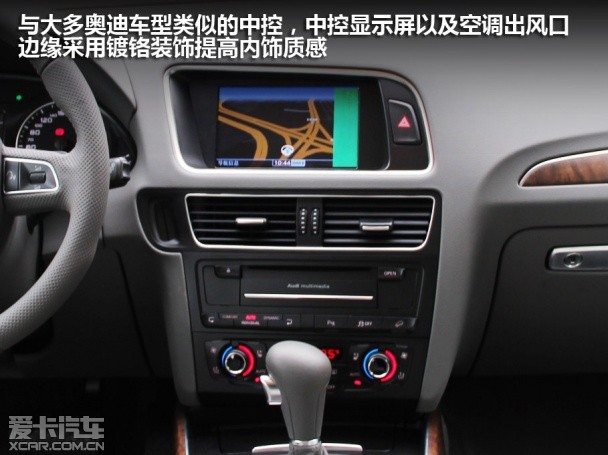 奧迪Q5裝備了新一代MMI系統。位于換擋桿后方的MMI多媒體信息交互系統,其控制終端的按鍵布局采用了新的設計,四周的功能按鍵由原有的8個減少到4個,更為優化的操作邏輯帶來更加人性化的使用感受。新奧迪Q5換擋桿也換為與全新一代奧迪A6L相同的款式,具有更好的握持感,并且將原來D擋與S擋機械式切換改進為更便利、更友好的電子式操作。