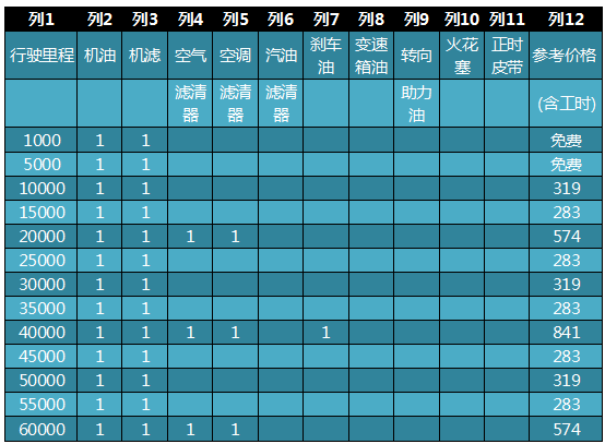 2、三年60000公里保養費: