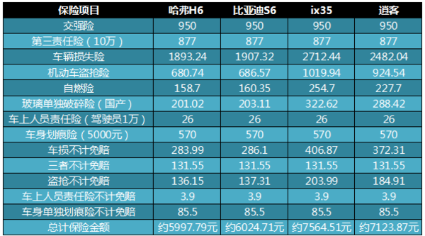 哈弗H6(按車價10.58萬計算),按第三責任險分別以10萬,保險金額為例,參考SOHU保險計算器。全險費用:5997.79元。