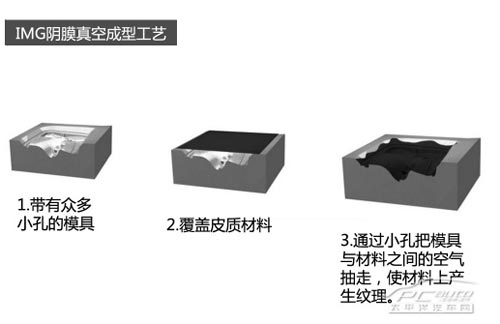 IMG陰膜真空成型工藝的原理其實就是利用真空把皮質材料吸緊在陰膜上,從而產生細致的紋理。這種陰膜制造20000個零件后,為保證產品質量就必須報廢掉,因而加工成本是非常高的。