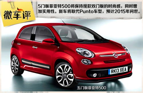 相比于普通版本500,此次菲亞特即將推出的五門版500絕非是對標準版500增加兩個車門,和500L一樣,五門版車型基于現款500的車身平臺進行加長,軸距有了較大的變化。而這一切的變化也導致五門版500從一款微型車搖身一變成為了小型車。而新車的推出將取代略顯老邁的菲亞特Punto車型。從假想圖來看,五門版500在繼承了500系列可愛俏皮的基礎上通過對前臉的家族化改進增加了一些穩重的元素。不過相比于現款Punto倒是增加了不少活力元素。