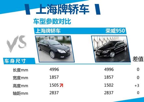 這款換標的“上海牌950”車型,在外觀上與榮威950沒有太大差異,車身尺寸也近乎相同,長寬高分別為4996mm/1857mm/1505mm,軸距為2837mm。“上海牌”轎車僅是針對車輛的前后LOGO進行更換。在動力方面,新車將搭載與榮威950相同的2.0L、2.4L以及3.0L三個排量的發動機,與之匹配的將是一臺6速手動一體變速箱。