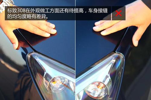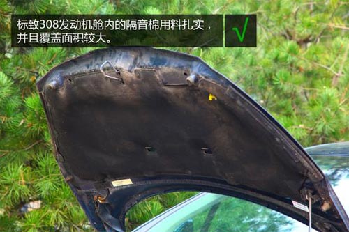 標致308發動機艙內的隔音棉做工還是比較扎實的,并且覆蓋面積較大,對車內靜音方面會有一定提高。不過其外觀做工方面還需進一步提高,前引擎蓋兩側的接縫并不均勻。
