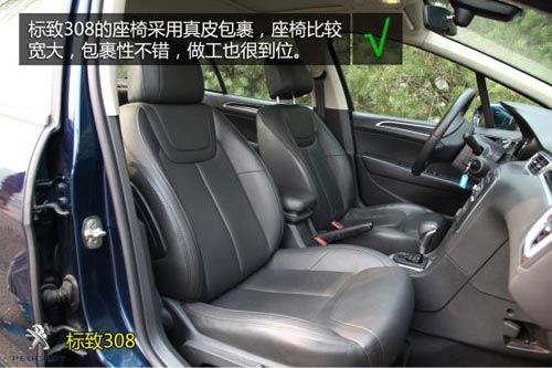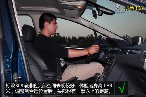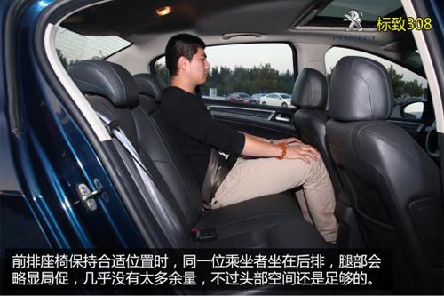 標致308的座椅與頭枕的填充物較軟,靠在上面非常舒適,座椅的包裹性也不錯。車門內側的用料也使用了軟質材料與真皮包裹,非常實在。不過空間方面,標致308在同級別車型中并不具備太大優勢,身高1.83米的乘客坐在后排幾乎沒有任何余量。