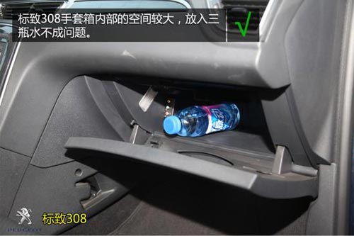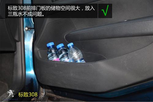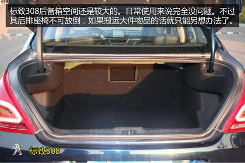 標致308的儲物空間較多,除了中央扶手箱內的空間較小,其余的儲物空間都比較大,非常實用。但標致308的后排座椅不可放倒,如果需要搬運大件物品時只能另想辦法,不過后備箱整體空間表現還是不錯的,可以滿足日常使用的。
