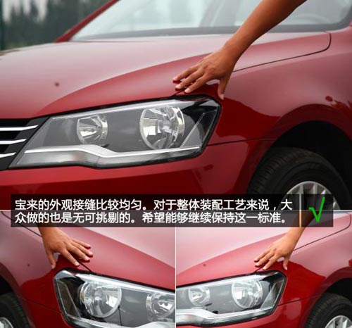 一汽大眾寶來的做工延續了其細致的傳統,外觀方面依然走著家族式的設計風格,外觀縫隙較為均勻,不過對于細節方面的配備還是稍有缺陷,例如引擎蓋下方并沒有配備發動機隔音棉,外后視鏡雖然集成了轉向燈,但鏡面面積稍小,還是有待提高的。