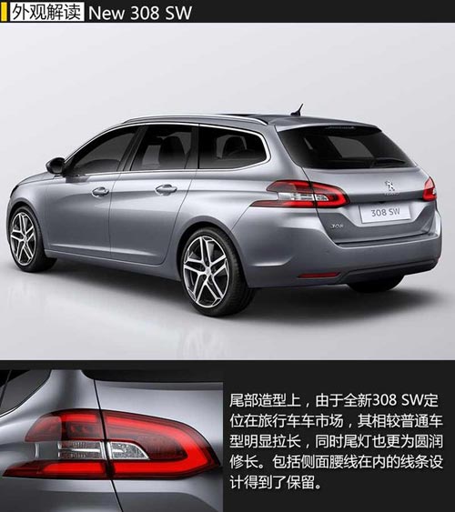 日前標致旗下全新A級兩廂轎車308已在海外正式上市,而未來該系列產(chǎn)品的衍生車型也將相繼換代。近日標致正式公布了,該品牌308系列產(chǎn)品中另一位成員308 SW旅行車的官方圖片。對于新車型的亮相時間,標致官方也表示:該款全新產(chǎn)品將在2014年3月舉辦的日內(nèi)瓦車展上全球首發(fā),并將率先在歐洲市場銷售。而其也或?qū)⒑芸煲雵鴥?nèi)銷售,對此標致全球總經(jīng)理畢高誠曾表示:“未來的中國市場上,標致新車型的上市頻率之快、與歐洲市場的同步性,將是未來任何一個品牌都無法比擬。”新車型將基于PSA集團最新研發(fā)的EMP2平臺打造,并得益于該技術(shù)的應(yīng)用,其相比現(xiàn)款308 SW車型在重量方面降低了140公斤,同時加上新增的1.2T發(fā)動機,有望使整車擁有十分出色的燃油經(jīng)濟性。