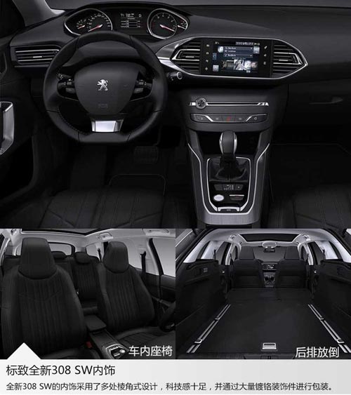 在內(nèi)飾方面,標致全新308 SW的整體布局同樣與普通兩廂車型十分近似,營造出極具科技感的內(nèi)部視覺效果。三幅式多功能方向盤造型設(shè)計略感穩(wěn)重,多棱角設(shè)計的中控臺利用鍍鉻裝飾件將空調(diào)出風(fēng)口以及中央顯示屏融為一體,加上簡潔的多媒體控制區(qū),使整車內(nèi)部擁有很高的整體性。同時作為一款旅行車,全新308 SW最大行李廂容積可達到610升。