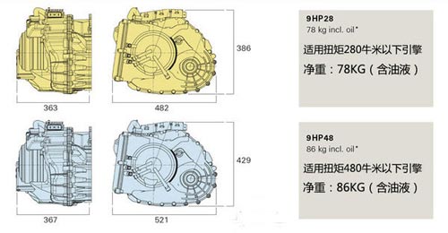 這臺(tái)9速自動(dòng)變速器來自知名變速箱廠商ZF(采埃孚),分為“9HP28”和“9HP48”兩款,能夠給不同扭矩輸出的車型提供配套工作。有別于以往的變速器,采埃孚在結(jié)構(gòu)上出人意料地采用了橫置方式,這在空間利用上會(huì)是很大的挑戰(zhàn)。但ZF最終還是做到了,盡管是9AT,變速箱的總質(zhì)量也依然鎖定在86KG(含油液)以內(nèi),體積也和傳統(tǒng)的6AT相當(dāng)。。