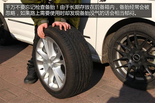 5.千萬不要忘記檢查備胎!由于長期存放,備胎經常會被忽略,如果路上需要使用時卻發現備胎沒氣的話會相當郁悶。如果方便的話也可以買一個電動充氣泵放在車里。