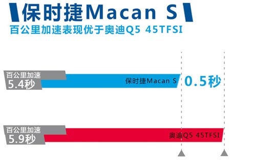 對于同樣搭載3.0T引擎的兩款車型而言,車輛的百公里加速也是受到消費者所關注的。根據保時捷官方的數據顯示,Macan S車型的百公里加速為5.4秒,比搭載3.0T引擎的進口奧迪Q5 45TFSI高出0.5秒。