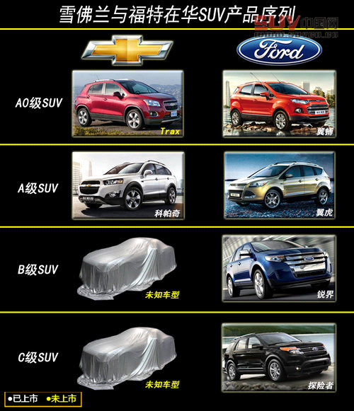 同時目前雪佛蘭在華的SUV產品線只有定位于A級SUV的科帕奇一款車型,與其競爭對手福特各級別市場全面的產品布局相比,略顯單一。而未來Trax的推出將為其填補雪佛蘭在小型SUV市場中的空白,并通過較別克相比,較低的市場定位與翼搏展開正面競爭。