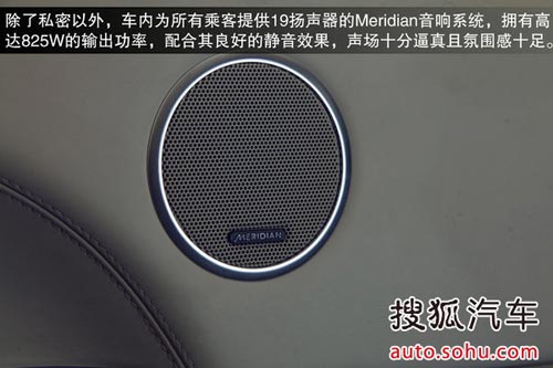 長途行駛對后排乘客是一個舒適的享受,后排娛樂系統可以在途中讓乘客欣賞的DVD影碟, 配合Mark Levinson音響系統,全車配備了19個揚聲器和額定功率450瓦的功率放大器,音效非常出眾。