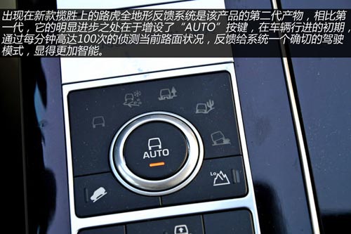 路虎新一代自動全地形反饋適應系統Terrain Response?是新攬勝身上最引人注目的一項。和前代攬勝一樣,輕量化底盤搭配了四輪空氣懸掛,以優化車輛在公路和越野路況下的表現。空氣彈簧提供可變的承載高度,同時其交叉鏈接的設計實現了最大限度的車軸鉸接。該空氣懸掛組件同樣進行了全新設計,使得攬勝的駕乘體驗通過全新的低滯后前端空氣彈簧裝置得到進一步提升。該裝置使用了更細、更具彈性的材料,并由金屬殼加以保護,能夠更有效地吸收細微顛簸。