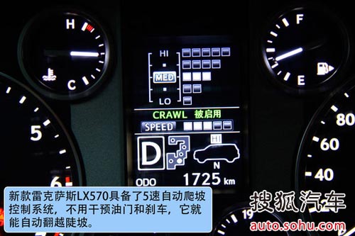 在松軟的沙地,雷克薩斯LX570仍舊給你了充足的信心順利通過,掛上低速四驅,主動懸架高度控制系統此時會自動升高懸架,盡管由于車身較重,在翻越沙坡時,車輪也會出現一定沉陷的現象,不過借助電子系統迅速干預,以及出色的動力性能,它仍能輕易翻越障礙。