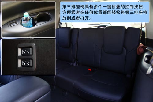 作為一款7座的全尺寸SUV,后排具備了更多的商務價值,其第二排座椅的舒適度其實不亞于前排座椅,盡管少了一些基本的調節功能,但是靠背角度調節可以實現一個更舒適的坐姿,美美睡上一覺顯得尤為悠閑自得。第二排具備寬闊的乘坐空間,而并沒有壓縮第三排的空間,這讓成為了一款十足7座車型。在不需要第三排座椅時,一鍵控制的折疊功能讓它可以輕松的收藏起來,與行李箱地板持平,換來更加寬大的行李箱空間。