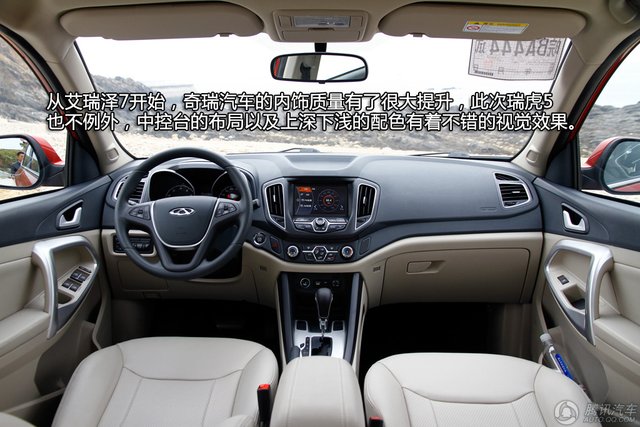 內(nèi)飾和配置方面,奇瑞瑞虎5的內(nèi)飾風(fēng)格和布局均與艾瑞澤7保持一致。瑞虎5也采用了三輻式的多功能方向盤設(shè)計,同時方向盤還集成了定速巡航和藍(lán)牙按鍵功能。內(nèi)飾采用上黑下米的雙色布局,整體造型借鑒了TX的設(shè)計語言,空調(diào)的出風(fēng)口和先前曝光的奇瑞另一款車M16一樣使用了相同的設(shè)計手法,都是分布于中控屏幕兩邊。