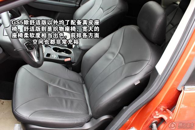 在座椅配置方面,GS5全系車型除舒適版外,其余車型均配備了真皮座椅,為車內(nèi)乘用者的乘用舒適性做出了提升。全系車型座椅可進(jìn)行6方向調(diào)節(jié),在豪華版以上車型中,座椅調(diào)節(jié)方式為電動,其余車型則為手動模式。座椅加熱功能出現(xiàn)在豪華版、尊貴版、周年紀(jì)念版以及至尊版車型中,進(jìn)一步提升了冬季駕駛車輛時,前排乘用者的乘用舒適性表現(xiàn)。