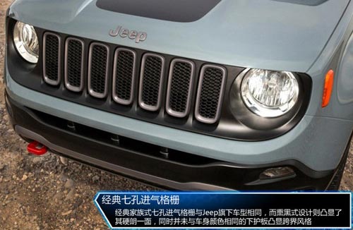 Jeep小型SUV繼承了家族硬派SUV設計風格,全新的車身延續了Jeep家族方方正正的設計語言。前臉造型褪去圓滑,回歸Jeep式的硬朗方正,經典家族式七孔進氣格柵和圓形前大燈,寬大的前保險杠、凸顯了其傳承經典元素,而該款車型也將主打80后人群,通過時尚、個性為賣點,以便吸引他們。