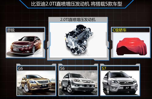 現階段比亞迪高端產品所搭載的發動機均是1.5TI的小排量直噴增壓發動機,今年2.0TI直噴增壓發動機也將陸續在比亞迪高端車型搭載,從而實現高端車型動力總成的全面升級。先期將在熱銷SUV產品S6、中級轎車G6和思銳,隨后在全新旗艦SUV-S7、C級轎車等共計五款車型上匹配。