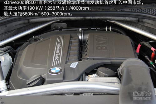 駕駛樂趣方面,寶馬的產(chǎn)品從來不輸給任何人。新X5目前裝備三種發(fā)動機(jī)型號,其中xDrive30d的3.0T直列六缸雙渦輪增壓柴油發(fā)動機(jī)首次引入中國市場,其最大功率190 kW(258馬力)/4000rpm;最大扭矩560Nm/1500-3000rpm。