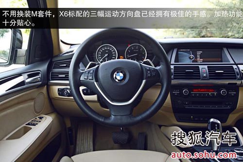 寶馬以駕駛者為中心的設(shè)計理念在X6之上仍然得到良好的貫徹,駕駛席的設(shè)計也只是尺寸上的變化。細(xì)膩皮革縫制的三幅方向盤有著極佳的手感,電子擋桿以及換擋撥片這兩種換擋方式對于喜歡駕駛的我們來說,有著難以抵擋的誘惑力。