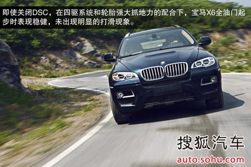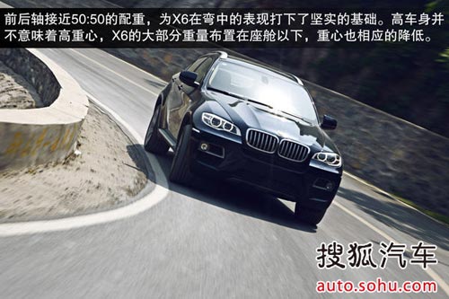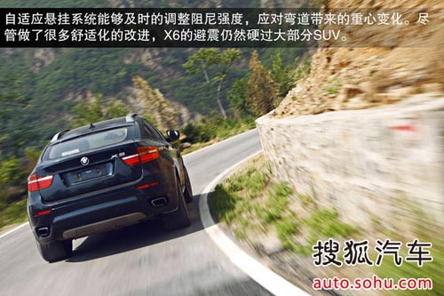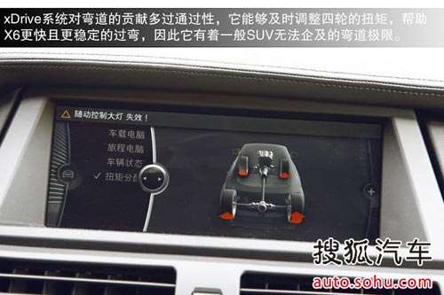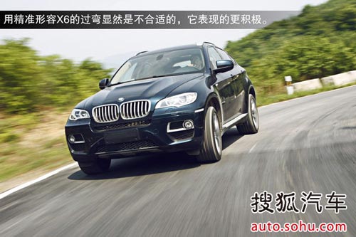 寶馬X6的轉(zhuǎn)向顯然不能用精準(zhǔn)來形容,它表現(xiàn)出了更多的主動性,因此方向盤的動作會被放大,車輛的靈活性也超出預(yù)期。xDrive系統(tǒng)能夠配合轉(zhuǎn)向需要,調(diào)整四輪的扭矩分配,使X6在彎中的表現(xiàn)更進(jìn)一步。寬胎給予駕駛者更多的信心,其抓地力與視覺沖擊力一樣強(qiáng)悍。駕駛X6,大可以像駕駛轎跑車那樣,在每一個彎道將速度推至極限。