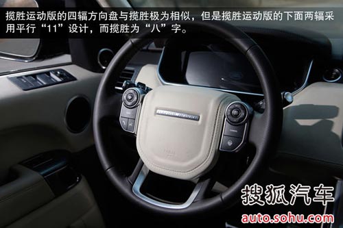 雖然攬勝運動版內(nèi)飾無論是材質(zhì)還是制造工藝,都達(dá)到了足夠豪華的程度。但也許就是電子換擋桿或者是"11"樣式的四輻方向盤,或者是連貫的中控臺鋁制邊框和碳纖維飾板。讓攬勝運動版除了豪華外還有了些運動的氣息。