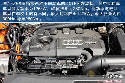 動力方面,國產(chǎn)奧迪Q3搭載與進口車型相同的動力系統(tǒng),其中35TFSI搭載的是編號為CRH型的2.0T發(fā)動機,其最大功率為125kW,另一款則是高功率版本的40TFSI型,發(fā)動機編號為CGM型,最大功率為147kW。