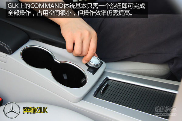分析:奧迪Q5的MMI系統集成在中央控制面板區域,并非與傳統式被設計在擋把后方,不過操控按鍵較大且分布合理,比較容易上手。而奔馳GLK的中控區域按鍵設計較小,雖然手感不錯但容易誤操作,COMMAND操控旋鈕設計在中央扶手前方,占用空間較小,但操作效率仍需提高。