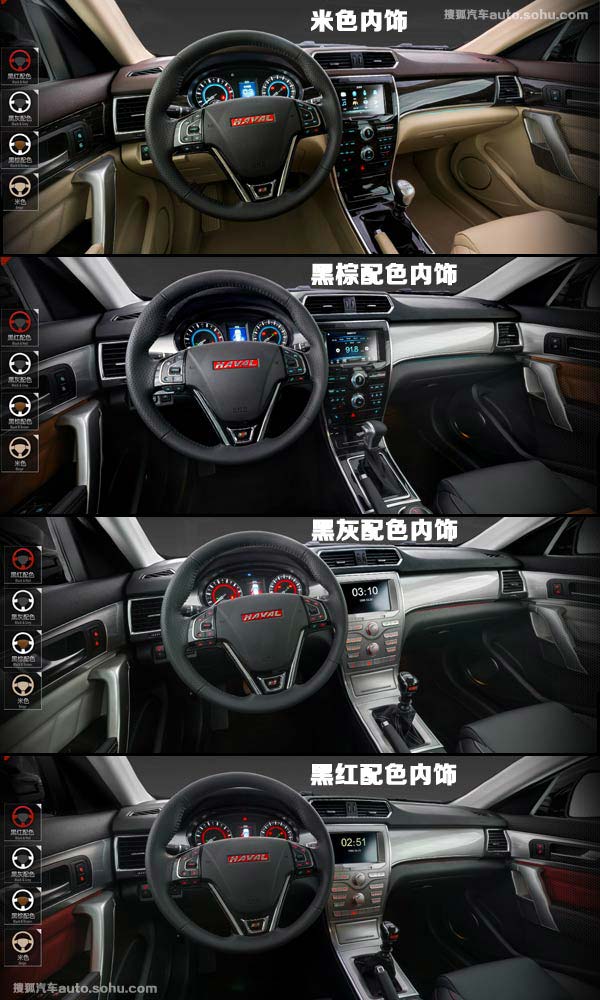 與競(jìng)爭(zhēng)對(duì)手的內(nèi)飾配置對(duì)比來看,除翼搏外,幾款車型都配備了定速巡航功能和中控液晶顯示屏,前者對(duì)長(zhǎng)途高速駕駛很有幫助,后者在功能方面只有兩款自主車型有導(dǎo)航功能。哈弗H2和長(zhǎng)安CS35配備的是皮革座椅,同時(shí)哈弗H2還帶有前排座椅加熱、前后中央扶手。長(zhǎng)安CS35沒有提供藍(lán)牙電話的功能,而這在其它車型都有裝備。兩款自主車型均配備手動(dòng)空調(diào),而合資車型都裝備為自動(dòng)空調(diào)。