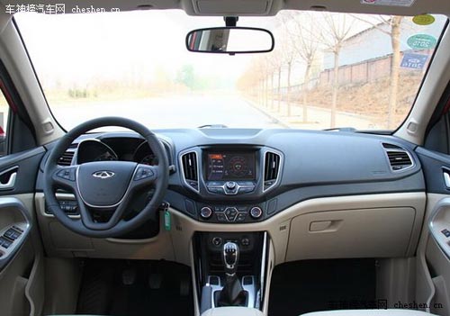 內飾和配置方面,奇瑞瑞虎5的內飾風格和布局均與艾瑞澤7保持一致。瑞虎5也采用了三輻式的多功能方向盤設計,內飾采用上黑下米的雙色布局,整體造型借鑒了TX的設計語言,空調出風口分布于中控屏幕兩邊。