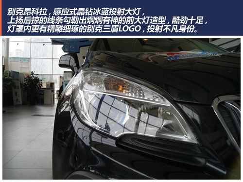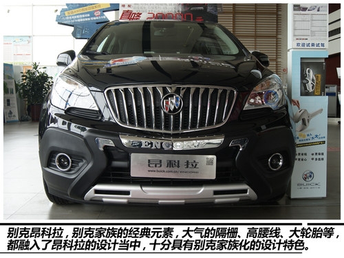 在如此緊湊的體積之內,設計師又竭力要將別克家族的經典元素融入其中,包括大氣的隔柵、高腰線、大輪胎等。其實這些“別克元素”是比較適合用于大車上的,放到這臺小車上,產生了頗為奇特的化學效果,似乎能在這款車上看到很多其他別克車型的樣貌。發動機蓋上隆起的線條與兩側鍍鉻進氣裝飾帶來不錯的視覺沖擊力,使得昂科拉車頭更為厚重。