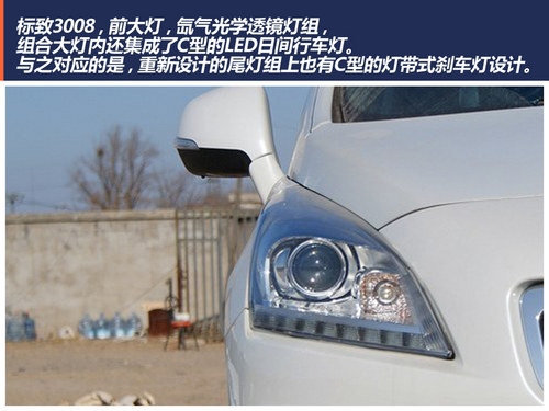 東風標致3008氙氣光學透鏡燈組,組合大燈內還集成了C型的LED日間行車燈。與之對應的是,重新設計的尾燈組上也有C型的燈帶式剎車燈設計。
