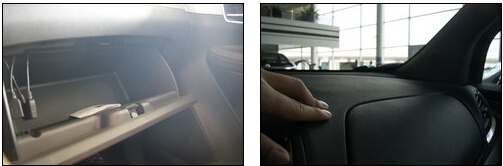 標致3008中控臺采用了黑色胡桃木風格的面板裝飾,方向盤下隱藏一大型儲物格,副駕駛同樣有儲物格的設計。