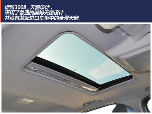 標致3008采用了普通的前排天窗設計,并沒有裝配進口車型中的全景天窗。