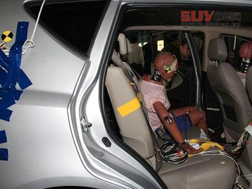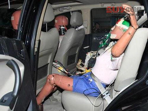 后排假人手臂上揚(yáng),安全帶未見松動(dòng)。