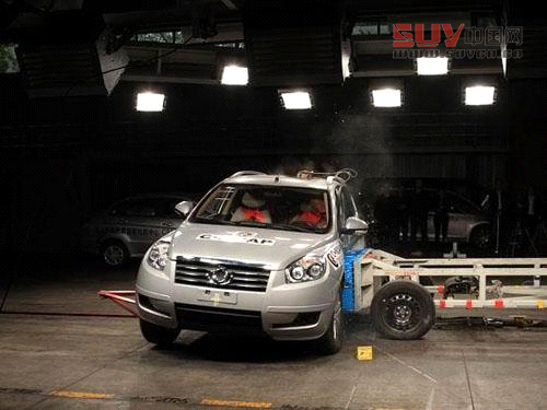 吉利全球鷹GX7可變形移動(dòng)壁障側(cè)面碰撞試驗(yàn)