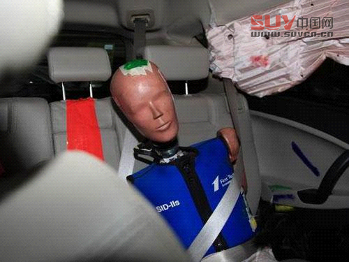 駕駛員假人坐姿基本正常,側(cè)氣簾正常打開。