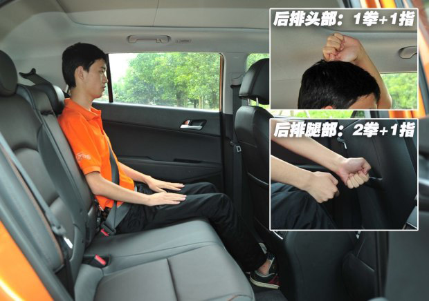 身高173cm的體驗者,坐在前排時頭部空間為一拳加一指;保持前排座椅不動,這時后排頭部空間同樣是一拳加一指,而腿部空間達到兩拳多。如此表現已經是同級別的中上水平了,軸距的優勢也很好地展現了出來。