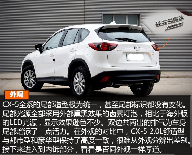 “我預算全辦下來20萬,想買輛SUV,你看哪款值得推薦”。這是我最近被問到最多的問題。作為一名汽車編輯,對于這個問題我還真的不好回答,因為可選擇的太多了。從這些購車咨詢中,也不難看出對于消費者來說SUV的誘惑力有多大。今天我就帶大家看一輛20萬以內能開回家的SUV車型:馬自達CX-5 2015款 2.0L 自動兩驅舒適型(官方指導價18.38萬元)看看它是否符合您的預期。作為馬自達CX-5自動擋的最低配車型它18.38萬元的售價性價比怎么樣?與比它配置更高的2015款 2.0L 自動兩驅都市型(官方指導價:19.08萬元)和2.0L 自動四驅豪華型(官方指導價:20.98萬元)又有怎樣的差異呢?看完這篇解讀低配車或許您心中會有個答案。(注:文章內將2015款 2.0L 自動兩驅舒適型簡稱舒適型、自動兩驅都市型簡稱都市型、自動四驅豪華型簡稱豪華型)