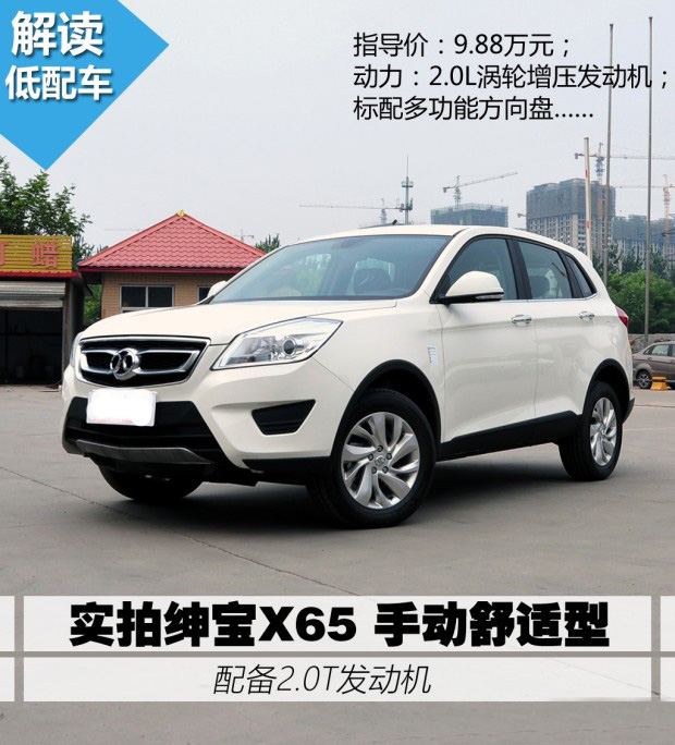 在今年三月份,北汽紳寶品牌推出了其首款SUV車型—北汽紳寶X65(以下簡稱紳寶X65)。和其它中國品牌相同,紳寶X65同樣是想在火爆的SUV市場中占據(jù)一席之地,從而拉動(dòng)銷量和提升品牌影響力。但理想和現(xiàn)實(shí)的差距往往讓人難以捉摸,它推出后能夠助推紳寶品牌提升銷量和品牌影響力嗎?倒不如先來看看它最低配車型的配置能否吸引你。我們本次實(shí)拍車型為紳寶X65 2.0T手動(dòng)舒適型,作為全系最低配的車型,它配備了2.0T渦輪增壓發(fā)動(dòng)機(jī),多功能方向盤等配置,具體表現(xiàn)如何?讓我們一起去了解一下。