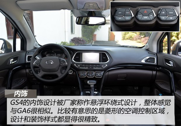 GS4采用了和GA6類似的家族式內飾,原創度同樣比較高。各種多邊形和弧線的運用,也使這套內飾有著年輕時尚的氣息。
