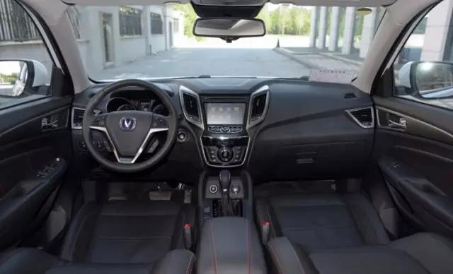 長安CS75與長安旗下其它車型有很多相似之處,中控臺、方向盤、儀表盤都是符合年輕人口味的設計。在細節之處還將長安的V字形車標造型融入其中,算是家族造型的一個特征。