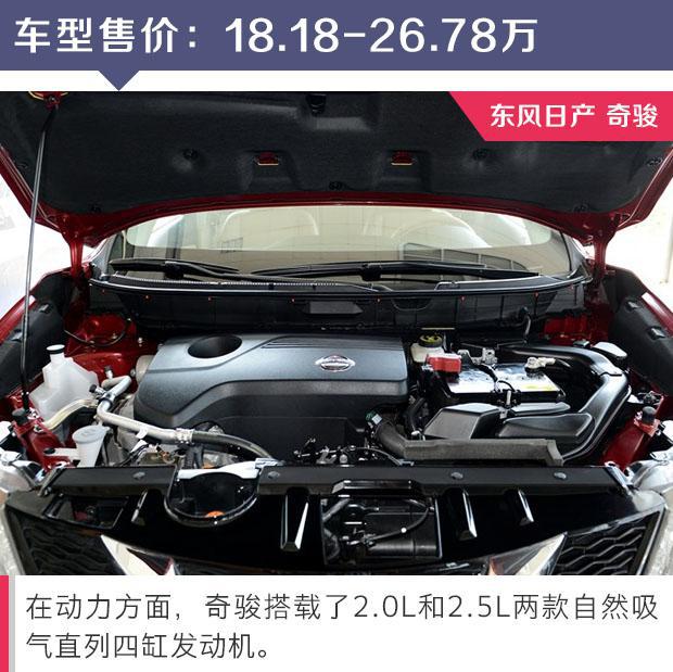 在動力方面,奇駿搭載了2.0L和2.5L兩款自然吸氣直列四缸發動機,最大功率分別為110kW和137kW,最大扭矩分別為200N·m和233N·m。與之匹配是一臺可以模擬7速的CVT變速箱。奇駿配備了具有兩驅、自動和鎖止三種可選模式的適時四驅系統,在自動模式和鎖止模式狀態下,車輛的穩定性和通過性更高,從而可以幫助駕駛者應對不同路況。懸架方面,奇駿采用了前麥佛遜后多連桿并帶前/后穩定桿式的結構,使其在操控性和舒適性上具有一定的優勢。