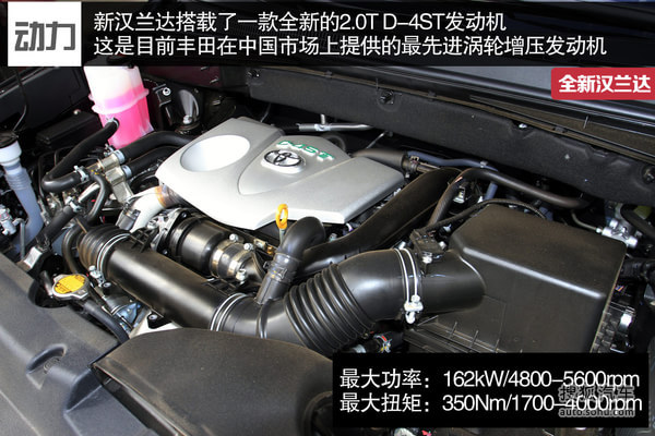 動(dòng)力方面,新漢蘭達(dá)搭載了一款全新的2.0T D-4ST發(fā)動(dòng)機(jī),這是目前豐田所能夠在中國(guó)市場(chǎng)上提供的最先進(jìn)渦輪增壓發(fā)動(dòng)機(jī),能夠具備"雙循環(huán)"、"雙噴射"和"雙渦管"系統(tǒng)。2.0T發(fā)動(dòng)機(jī)的最大功率達(dá)到了162kW,最大扭矩為350Nm,與老款2.7L車型相比大幅提升了功率扭矩輸出,同時(shí)油耗低到僅8.2L,是同級(jí)中2.0T發(fā)動(dòng)機(jī)較為出色的一款。